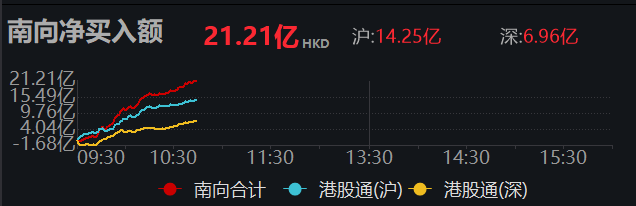 上证报中国证券网讯 5月9日10时45分,南向资金净买入超20亿港元。